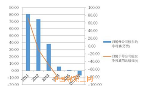與之相對應(yīng)的是,中聯(lián)重科的凈利潤出現(xiàn)了更大幅度的下滑,5年時間從逾80億元暴跌至不足1億元,截至2015年末,其凈利潤只有可憐的8000多萬元。2014年和2015年甚至出現(xiàn)了連續(xù)兩年凈利潤同比下滑幅度超過80%的慘狀。2016年一季度公司歸屬于母公司股東的凈利潤為-6.60億元,同比大幅下滑72.25%。