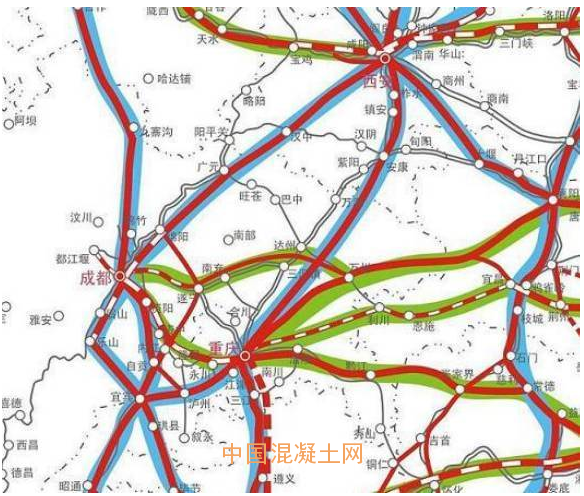 沿江通道。上海~南京~合肥~武漢~重慶~成都高速鐵路,包括南京~安慶~九江~武漢~宜昌~重慶、萬州~達(dá)州~遂寧~成都高速鐵路(其中成都至遂寧段利用達(dá)成鐵路),連接華東、華中、西南地區(qū),貫通長三角、長江中游、成渝等城市群。