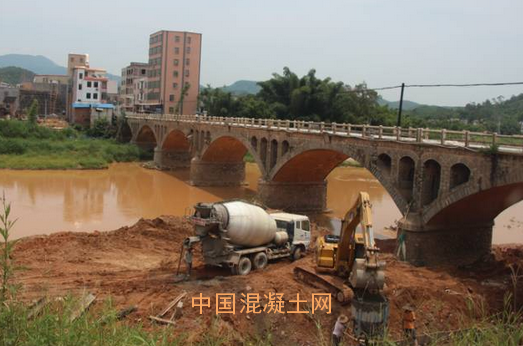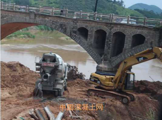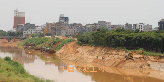 在信宜市水口鎮(zhèn)648縣道東江河橋邊,這里曾經(jīng)是黃志雄另一非法攪拌站,前段時(shí)間經(jīng)廣東電視臺(tái)曝光后聽(tīng)說(shuō)已經(jīng)被信宜市限令自行拆除。但當(dāng)我們走近東江河橋邊時(shí)發(fā)現(xiàn),這里的水利工程正在熱火朝天的進(jìn)行中,而大量使用的混凝土正是從東江河邊不到30米的黃志雄非法攪拌站來(lái)過(guò)來(lái)的。