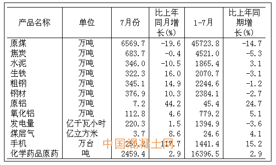 四、分產品產量看,7月份,全省12種主要工業(yè)產品產量“3降9升”。原煤產量下降19.6%,降幅較6月份收窄8.1個百分點;水泥產量下降10.5%,降幅擴大8.9個百分點;焦炭產量下降0.4%,增速較6月份由正轉負回落3.4個百分點。發(fā)電量、化學藥品原藥、氧化鋁、煤層氣、鋼材、粗鋼、生鐵、原鋁和手機產量分別增長1.5%、2.9%、4.6%、8.6%、10.3%、14.9%、16.0%、44.2%和117.7%。其中,鋼材、粗鋼、生鐵、原鋁產量增速分別較6月份回升1.1個、4.4個、8.8個和3.6個百分點。