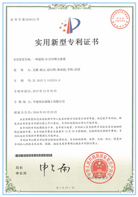 近日,中建西部建設所屬中建商砼研發的“一種建筑3D打印噴頭裝置”獲得國家實用新型專利授權。