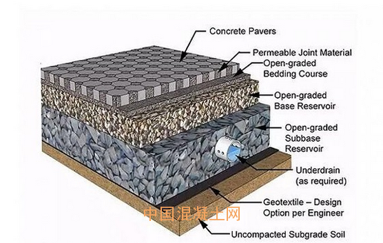 Topmix Permeable路面系統由英國混凝土制造公司“Lafarge Tarmac”設計制造。與普通公路路面不同,它分為三層:表面是穿透力極強的碎石層,由體積較小的花崗巖碎石拼接在一起;中間是堆積較大卵石的儲水層和相對松軟的毛石底層,最后才是我們平常所見到的地下排水管道。該路面系統不僅具有強悍的吸水功能,而且還可以在氣溫升高的時利用存儲水分降低地面溫度,保持路面干燥,使得行車更加安全。