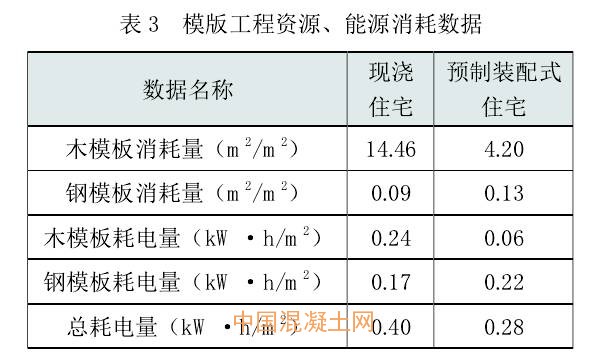 二是預制裝配式住宅由于木模板用量較現澆住宅少,木模板的加工能耗少,能耗節省優勢明顯。同時,由于預制裝配式住宅鋼模板用量較現澆住宅大,因此鋼模板的加工能耗較高。