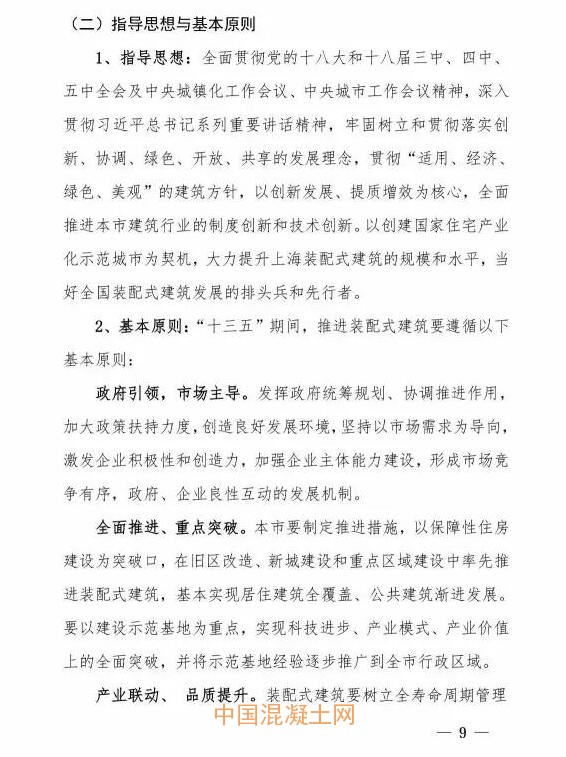 “十三五”期間,上海將以政府引領,市場主導;產業(yè)聯動、品質提升;科技先導、創(chuàng)新轉型為原則。重點以統(tǒng)籌規(guī)劃加強頂層設計、完善標準體系、推動建設模式創(chuàng)新、提升建筑質量與監(jiān)管水平等方面,全面推進上海市裝配式建筑發(fā)展。希望通過未來五年的努力,建立適應上海特點的裝配式建筑制度體系、技術體系、生產體系和監(jiān)管體系,形成適應裝配式建筑發(fā)展的市場機制和發(fā)展環(huán)境。