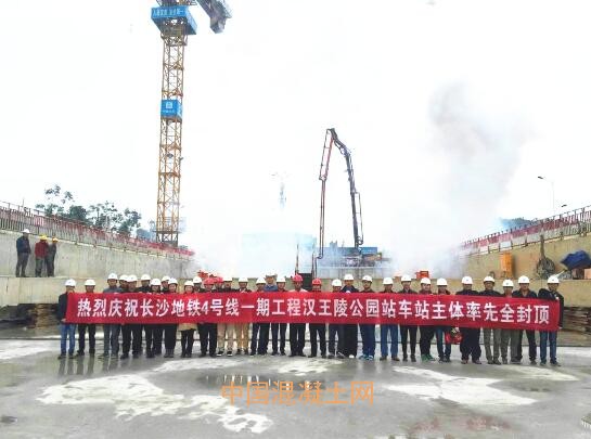長沙地鐵4號線一期工程漢王陵公園站由中建五局隧道公司承建,全長279.85米長,為雙層車站,混凝土方量約為4萬方。