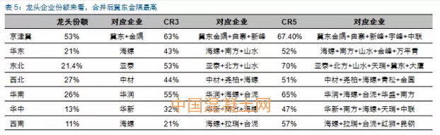 具體來(lái)看:合并完成后,冀東水泥的熟料產(chǎn)能將由7,483萬(wàn)噸上升至10,822萬(wàn)噸,增加44.6%,水泥產(chǎn)能由12,528萬(wàn)噸上升至16,623萬(wàn)噸,增加32.7%,成為全國(guó)三家熟料產(chǎn)能過(guò)億的水泥企業(yè)之一。重組后,北方地區(qū)的水泥市場(chǎng)結(jié)構(gòu)將有顯著變化,尤其是在雙方重合度最高的京津冀地區(qū),競(jìng)爭(zhēng)格局將徹底改變。