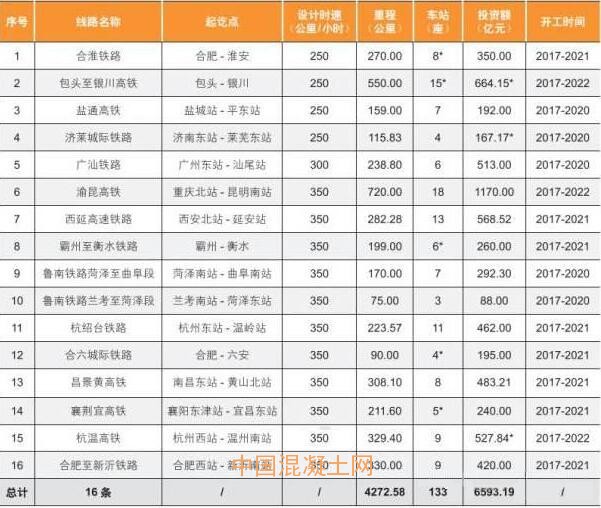 本文僅對2017年將要開工的高速鐵路線路進行預測,不代表實際結果,由于高速鐵路建設周期較長,開工涉及的因素較多,不排除一些原定于2016年底開工的線路延遲到2017年開工,以及2017年底開工的線路將會延遲到2018年開工的情況,因此,如文中的預測與實際開工情況有差異,還望讀者諒解。本文界定的高速鐵路范圍為250公里/小時、300公里/小時以及350公里/小時及以上。