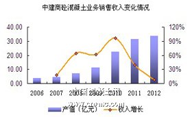 上海城建物資有限公司與上海建工一樣,是上海市知名的混凝土企業之一。2012年,上海混凝土行業發展速度放緩,受此影響,公司混凝土業務銷售收入有所下降,達到12.2億元,較2011年下降了2.56%。但產量有所增加,達到了385萬方,較2011年增加了2.1%。