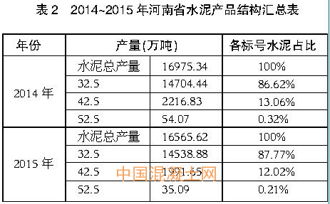 河南省水泥熟料生產(chǎn)企業(yè)規(guī)模及近二年產(chǎn)品結(jié)構(gòu)見表1表2。