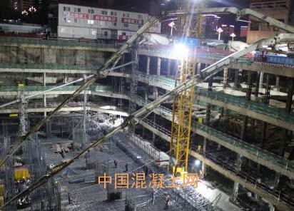 昆明恒隆廣場筏板澆筑現場。鐘欣 攝