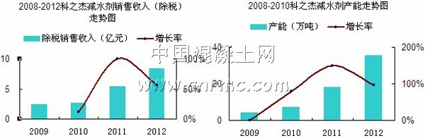 公司還將繼續(xù)加快全國性市場的拓展,目前已經(jīng)跨越八個省(直轄市)建立了十個產(chǎn)業(yè)基地,盈利能力不斷得到優(yōu)化,營業(yè)收入和利潤持續(xù)保持高速增長。2012年實現(xiàn)主營業(yè)務收入除稅后8.44億元,較上年同期5.4億元(除稅),增長56.30%。預計到2015 年,混凝土商品化率(減水劑需求)比例將提升至50%,同時由于混凝土總量也有小幅增長,因此未來5年減水劑需求復合增長率將達到14%以上。