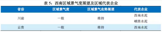 中南兩湖地區新增產能壓力逐步釋放;兩廣地區需求有望向好,價格有望維持高位;此外仍需關注山水股權之爭事件后續發展對山東、河南、遼寧三省區域競爭格局的影響。