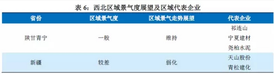 西北區域中長期需求仍有增長空間,但短期需求明顯改善的可能性不大;新疆受區域產能嚴重過剩影響,錯峰生產未能支撐價格上漲,產能仍待整合、出清;陜西市場在海螺與西部水泥的合作下,競爭格局有望向好。