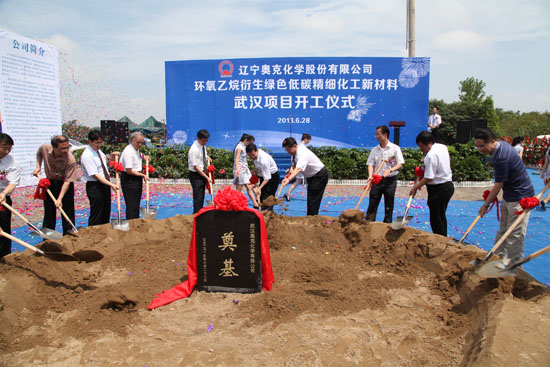 奧克股份2013年在武漢投資的年產12萬噸環氧乙烷衍生綠色低碳精細化工新材料武漢項目6月28日在武漢化工區成功舉行奠基儀式。該項目建設期一年,建成投產后將有效地滿足我國華中區域聚羧酸減水劑等行業快速發展的需求, 基本上實現公司環氧乙烷衍生精細化工新材料產業基地在全國的戰略布局。包括年產6萬噸減水劑用聚醚,年產2萬噸聚乙二醇和年產4萬噸脂肪醇醚,計劃投資3.84億元,公司擬以自有資金投資2億元,其余來自銀行貸款。項目達產后,預計年均銷售收入16.45億元,年均凈利潤為7471.54萬元。