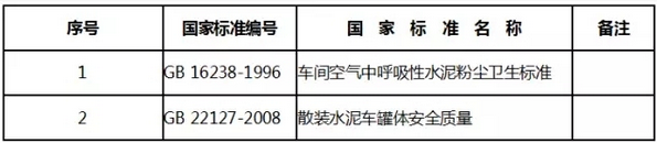 近期,國(guó)家質(zhì)檢總局和國(guó)家標(biāo)準(zhǔn)委同時(shí)發(fā)布了2017年第6號(hào)公告,廢止了GB 16238-1996《車間空氣中呼吸性水泥粉塵衛(wèi)生標(biāo)準(zhǔn)》和GB 22127-2008《散裝水泥車罐體安全質(zhì)量》兩項(xiàng)標(biāo)準(zhǔn)。
