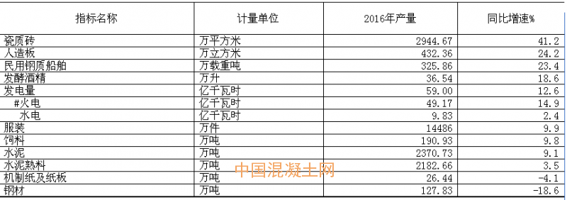 表一:貴港市2016年主要產品產量表