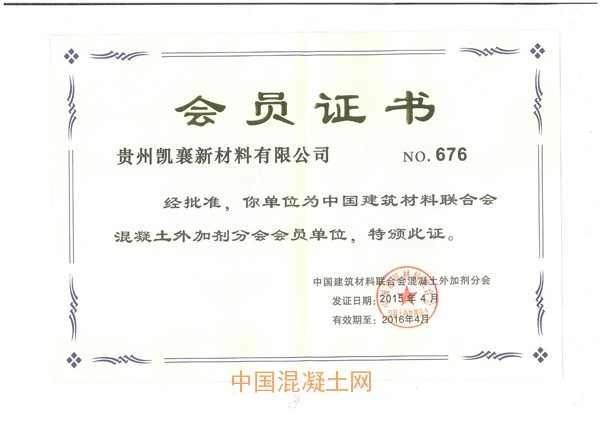 混凝土外加劑會員證書