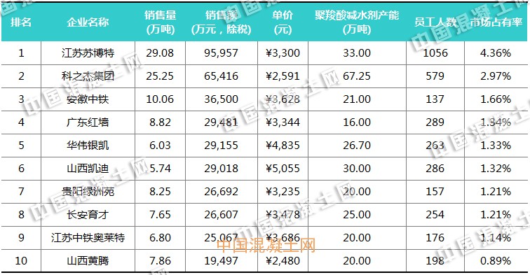 【2016年中國聚羧酸減水劑企業(yè)十強(qiáng)介紹】