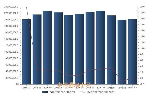 相關數據顯示,2017年3月我國水泥產量達2億噸,同比增長0.3%,水泥市場需求逐步恢復,單月水泥產量同比略有增長。