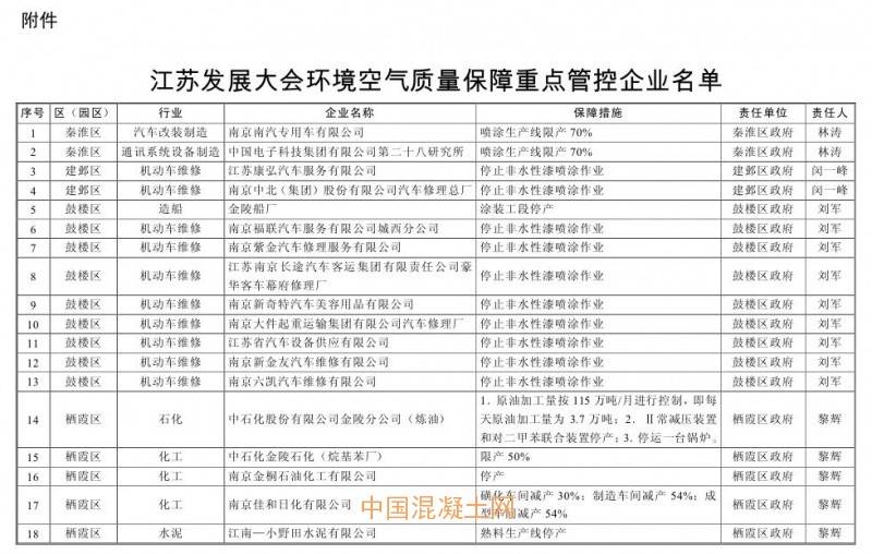 附:江蘇發(fā)展大會(huì)環(huán)境空氣質(zhì)量保障重點(diǎn)管控企業(yè)名單
