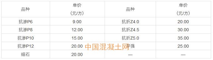 以上是泵送混凝土價格,普通混凝土少10元/方。