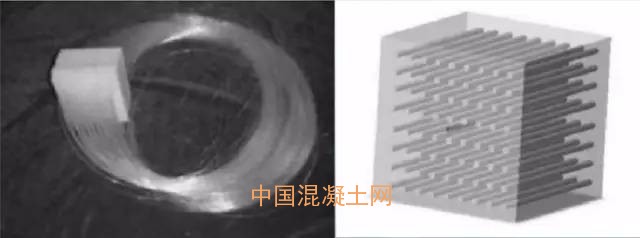 ”先植法“:將文字、圖形等繪制半硬質(zhì)的塊體上,如EPS或者XPS等發(fā)泡聚苯乙烯塊體,按圖形打孔,穿入已準(zhǔn)備的光纖棒,將帶著光纖棒的塊體放入成型模內(nèi),再澆注免振搗的水泥凈漿或水泥細(xì)砂漿。待其硬化具有一定強度后,再經(jīng)鋸切露出光纖棒的光點形成的圖形,就成為導(dǎo)光的裝飾水泥混凝土。