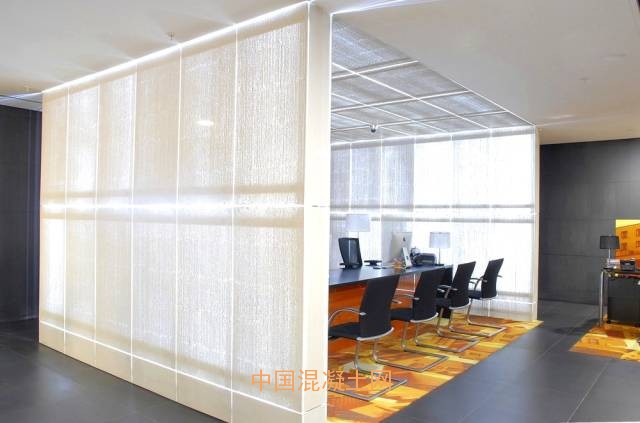 二、美化視覺效果。用透光混凝土做成的混凝土墻就像是一幅銀幕或者一個掃描器,這種效果使人覺得混凝土的厚度和重量都消失了,并能做成不同的紋理和色彩,在燈光下達(dá)到其藝術(shù)效果。
