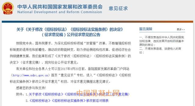 近日,國(guó)家發(fā)改委在其官網(wǎng)發(fā)布了“關(guān)于《關(guān)于修改〈招標(biāo)投標(biāo)法〉〈招標(biāo)投標(biāo)法實(shí)施條例〉的決定》(征求意見(jiàn)稿)公開(kāi)征求意見(jiàn)的公告”,決定對(duì)《招標(biāo)投標(biāo)法》、《招標(biāo)投標(biāo)法實(shí)施條例》進(jìn)行了修改。這是繼今年3月份以來(lái)的又一次修改,所修改的條文數(shù)多達(dá)10條。