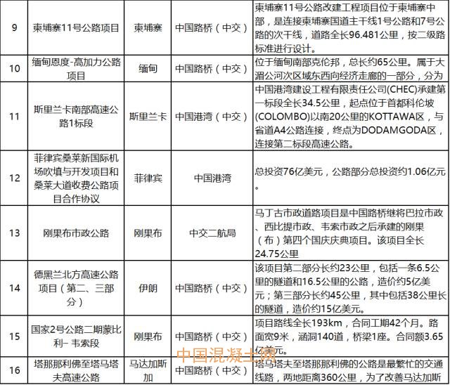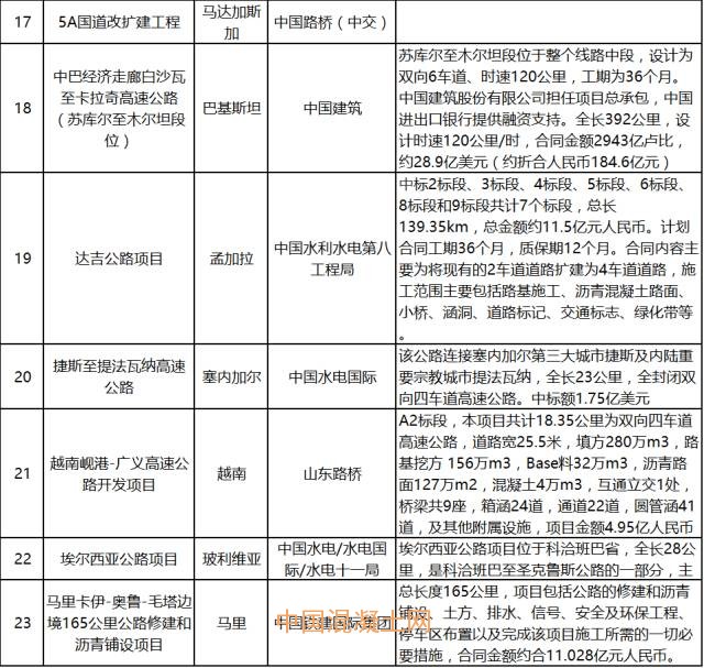 下面則是小編收集的中國在近幾年一帶一路建設中承包的主要高速與公路項目: