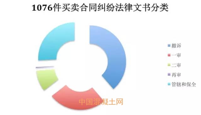 重慶地區(qū)2014年以來(lái)混凝土公司涉訴的買(mǎi)賣合同糾紛1076件,其中涉及管轄異議和財(cái)產(chǎn)保全的程序性案件有276件,經(jīng)歷實(shí)體審理的794件,其他7件。