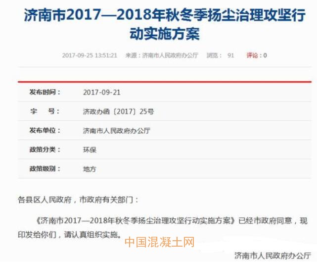 為了進一步強化濟南市揚塵污染防治工作,有效控制秋冬季揚塵污染,促進空氣質量持續改善,濟南市根據《京津冀及周邊地區2017-2018年秋冬大氣污染綜合治理攻堅行動方案》制定了“藍天保衛戰”行動方案——《濟南市2017-2018年秋冬季揚塵治理攻堅行動實施方案》,明確規定在2017年11月15日至2018年3月15日期間,停止各類道路工程、水利工程等所有處于土石方作業階段的建設工程和房屋拆遷施工采暖季都要停工。未按要求停工的,不僅面臨上限處罰,還可能要“連累”企業其他項目拿不到許可證。