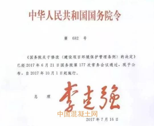 《國務院關于修改〈建設項目環境保護管理條例〉的決定》已經2017年6月21日國務院第177次常務會議通過,現予公布,自2017年10月1日起施行。