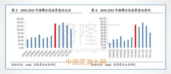 首先,2010年的旺季拉閘限電,對海螺水泥產生了明顯的利潤彈性。2010年第四季度,海螺水泥的噸毛利是達到了133元/噸,同比增長60元/噸,環比增長66元/噸;噸凈利則是達到78元/噸,同比增長39元/噸,環比增長43元/噸。