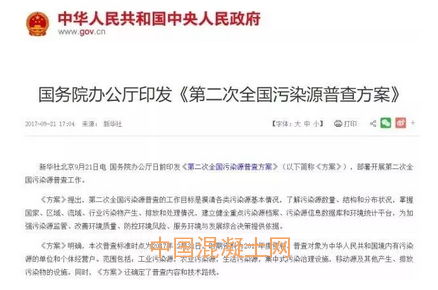 9月21日,國務院辦公廳發(fā)通知稱,將開展第二次全國污染源普查工作,標準時點為2017年12月31日。
