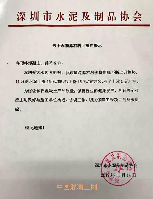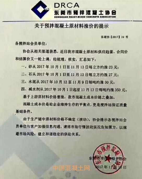 原材料價格不斷上漲,直接推動混凝土生產(chǎn)成本上升。近日廣東廣州、深圳、東莞、中山、江門等地行業(yè)協(xié)會相繼發(fā)文,建議各混凝土企業(yè)相應(yīng)調(diào)整價格。