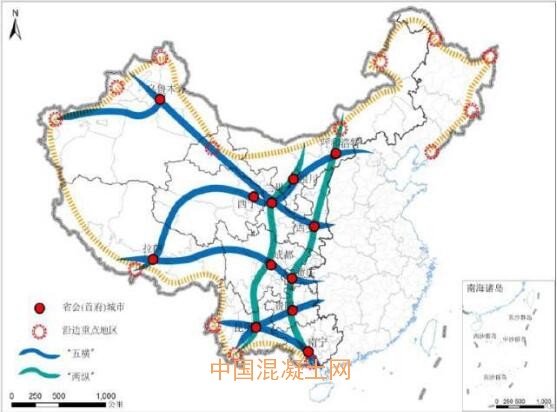 兩條縱軸:包昆通道、呼(和浩特)南(寧)通道。
