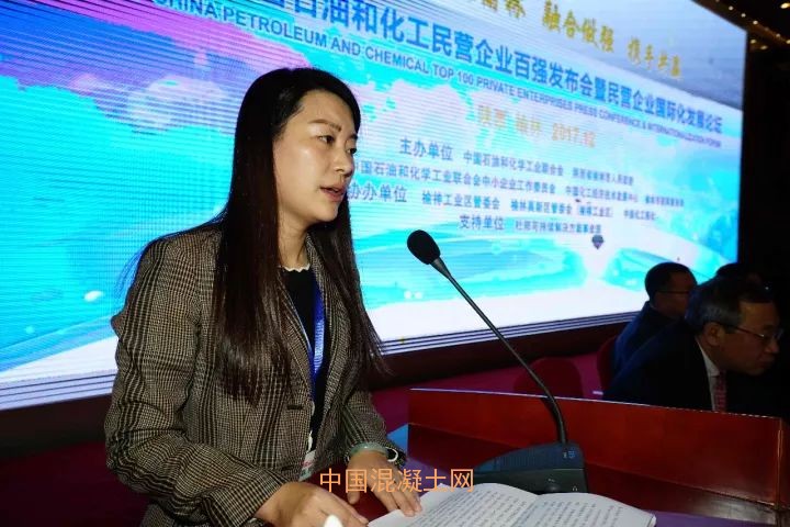 圖為中國石化聯合會中小企業工作委員會秘書長王靜敏宣讀“2017中國石油和化工民營企業百強發布報告”。