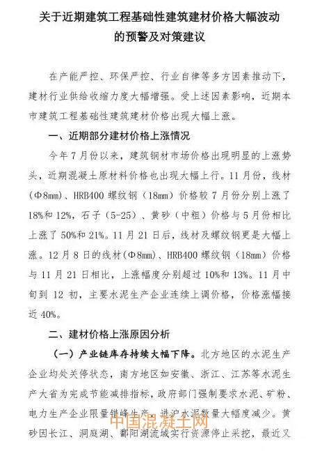 在產(chǎn)能嚴(yán)控、環(huán)保嚴(yán)控、行業(yè)自律等多方因素推動下,建材行業(yè)供給側(cè)收縮力度大幅增強(qiáng)。受上述因素影響,近期上海市建筑工程基礎(chǔ)性建筑材料價(jià)格出現(xiàn)大幅增長。