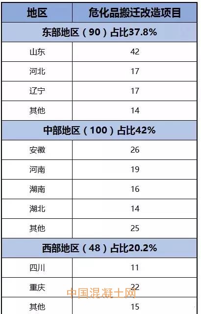據了解,2015年,天津8·12爆炸事故發生后,工信部、國家發改委等遴選出238個危化品搬遷改造項目。按區域劃分,東部地區有90個,占項目總數的37.8%,中部地區有100個,占項目總數的42%;西部地區有48個,占項目總數的20.2%。