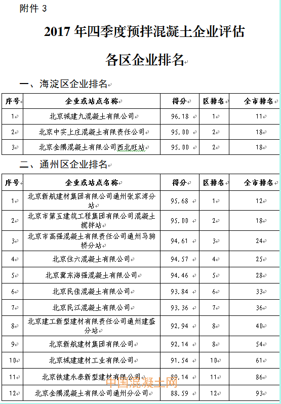 3.2017年四季度預拌混凝土企業評估各區企業排名