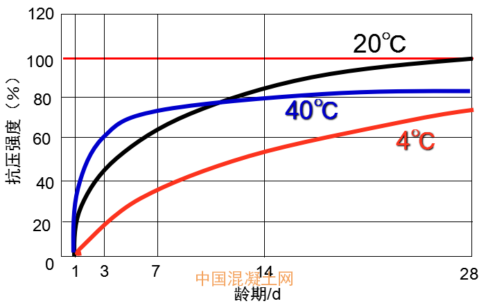 我們再看看混凝土對于溫度的敏感性(圖2),圖2時不同養護溫度下對混凝土28d強度的影響。不難看出,混凝土最適宜的溫度也是20度,與人體恰好一致!