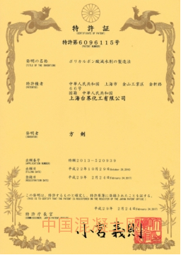 目前,臺界化工有效發(fā)明專利總計17項,其中包括國外發(fā)明專利4項(美國專利局授權(quán)專利1項,澳大利亞專利局授權(quán)專利1項,日本專利局授權(quán)專利1項,加拿大專利局授權(quán)專利1項),表明公司挖掘?qū)@芰^強,知識產(chǎn)權(quán)工作卓有成效,臺界化工于2015年獲得上海市專利試點企業(yè)認定,2017年完成知識產(chǎn)權(quán)管理體系(GB/T 29490-2013)認證審核,取得認證證書。
