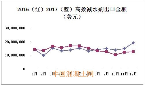 2016-2017年我國高效減水劑進出口數(shù)據(jù)