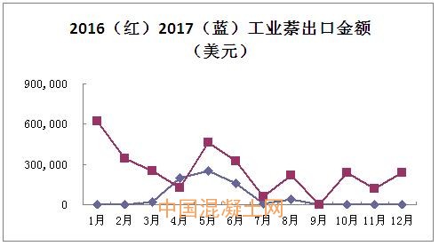 2016-2017年我國工業(yè)萘進出口數(shù)據(jù)