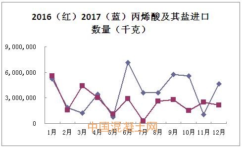 2017年1-12月混凝土外加劑原料進出口數(shù)據(jù)統(tǒng)計