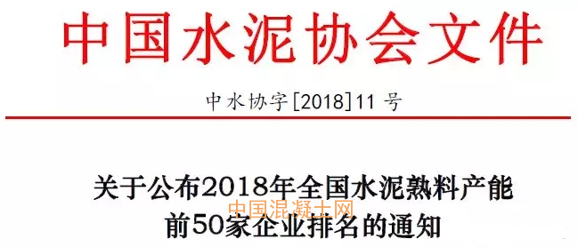 中國水泥協會根據協會產能數據庫,并與各省市自治區水泥(建材)協會數據核實后。現將“2018年全國水泥熟料產能前50家企業排名”向社會公布。