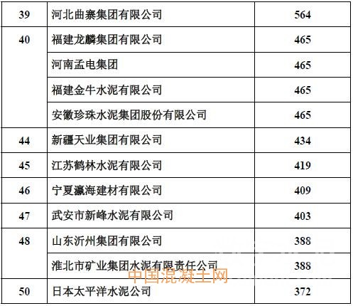 附件:1、2018年全國水泥熟料產能前50家企業排名