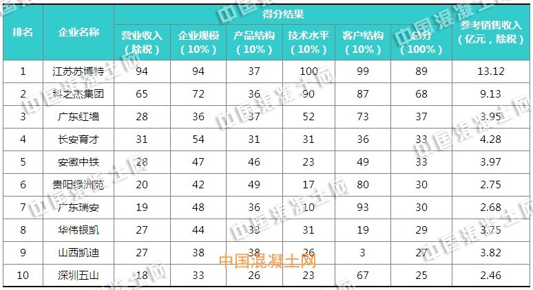 “東科杯”2016年中國混凝土外加劑企業(yè)綜合十強