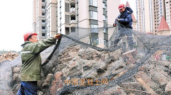 在執法人員監督下,施工單位緊急整改,對裸露建筑垃圾進行覆蓋