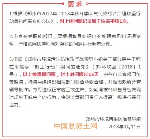 鄭州市環境污染防治督導組,3月11日對幾家違規“破土”施工的單位進行通報,并將嚴格按照法律程序對存在的問題進行調查處理,被通報問題的單位封土時間順延15天。